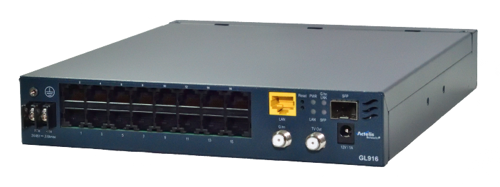 - 10 x 1/2.5 Gbps ports, to be used with GL901CS G.hn over coax SFPs